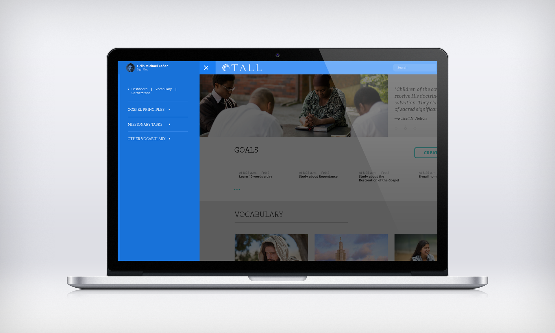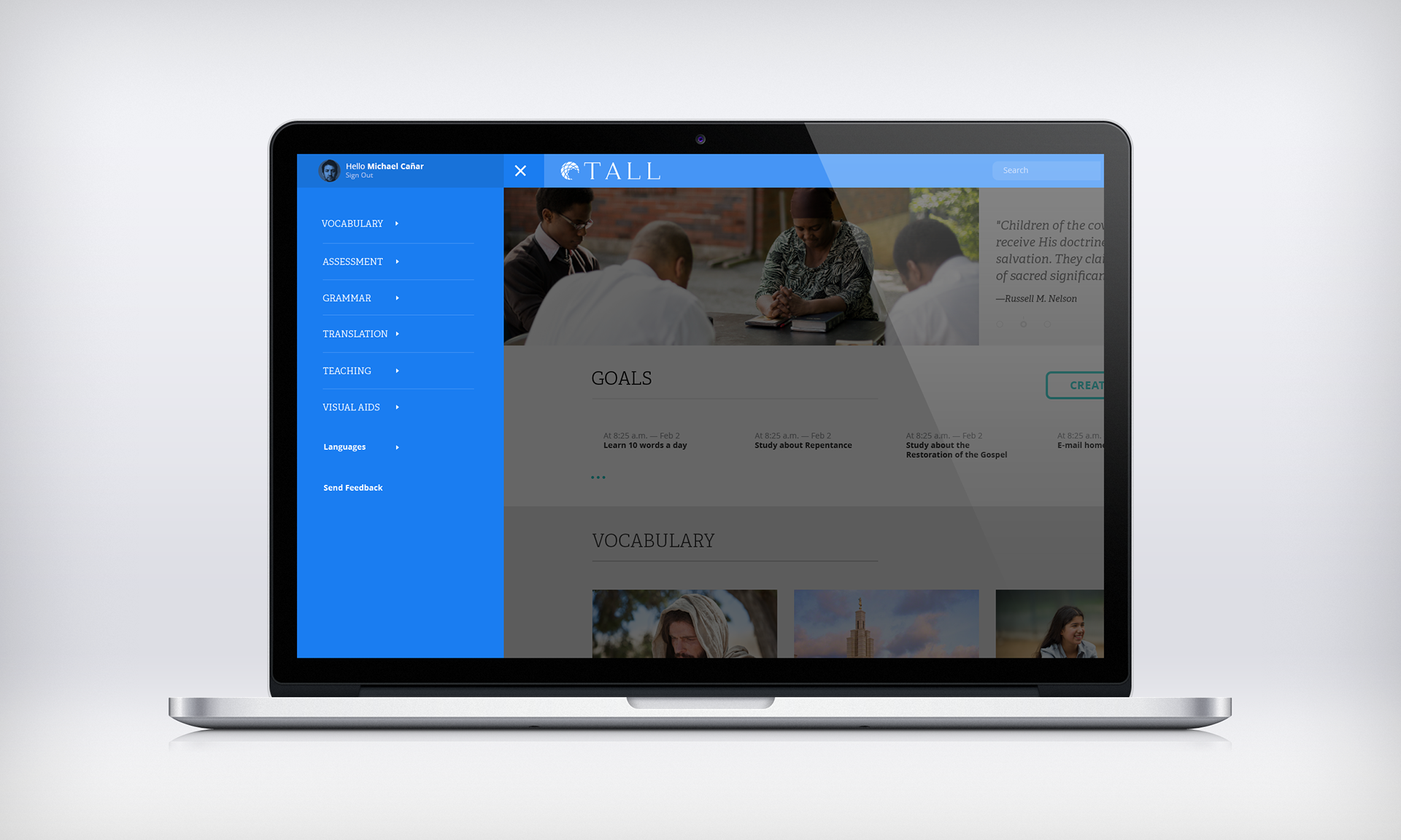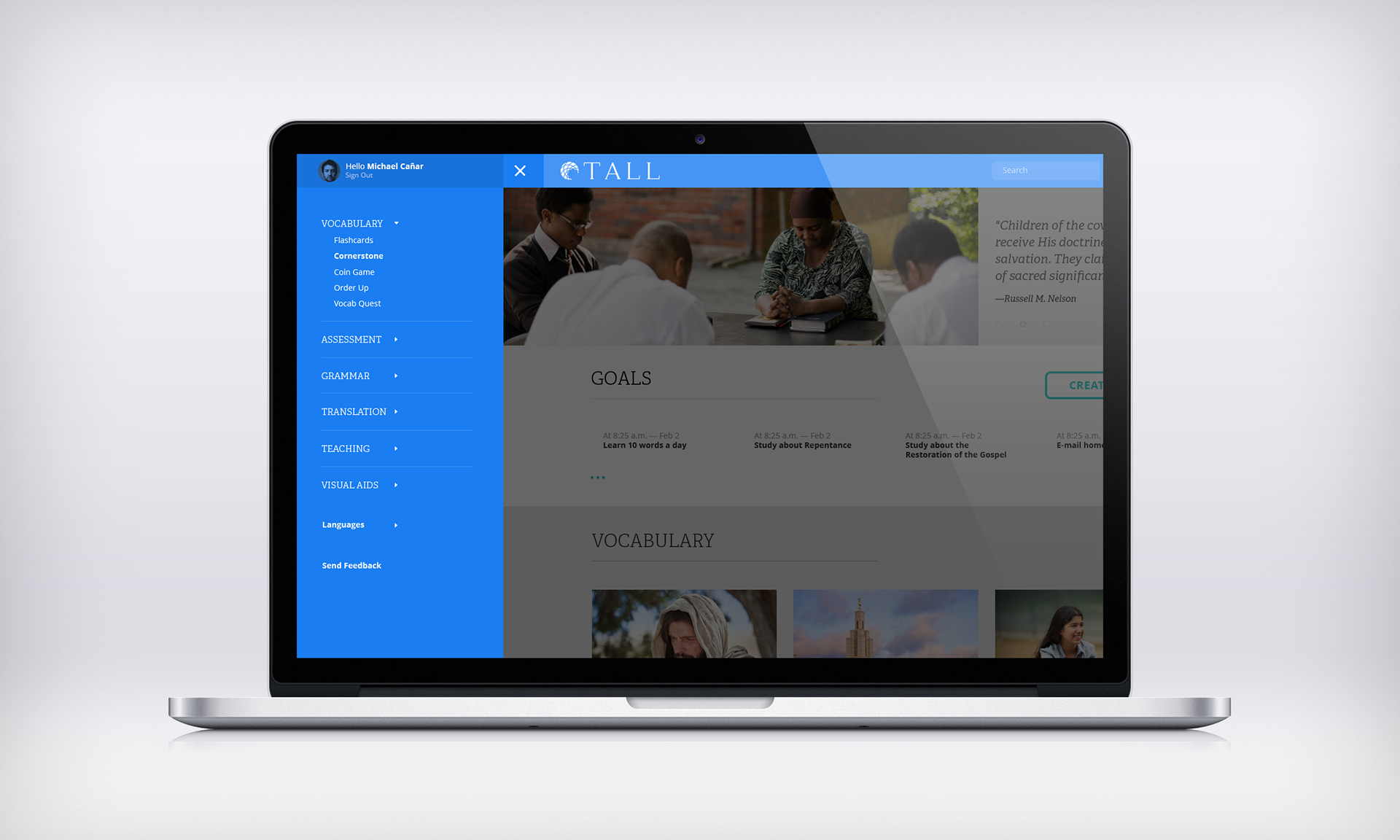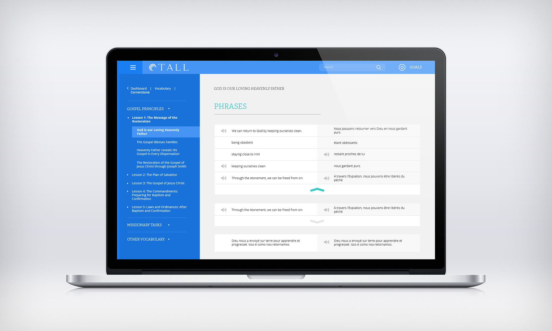 Tall is a website used to help pre-missionaries learn and experience the new language assigned before entering the MTC. I used someone’s assets and then created the functionality.