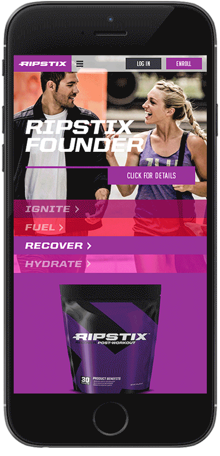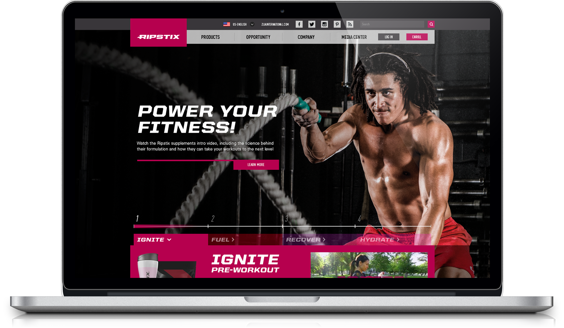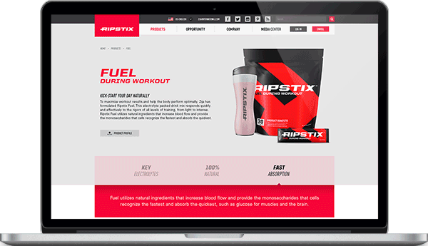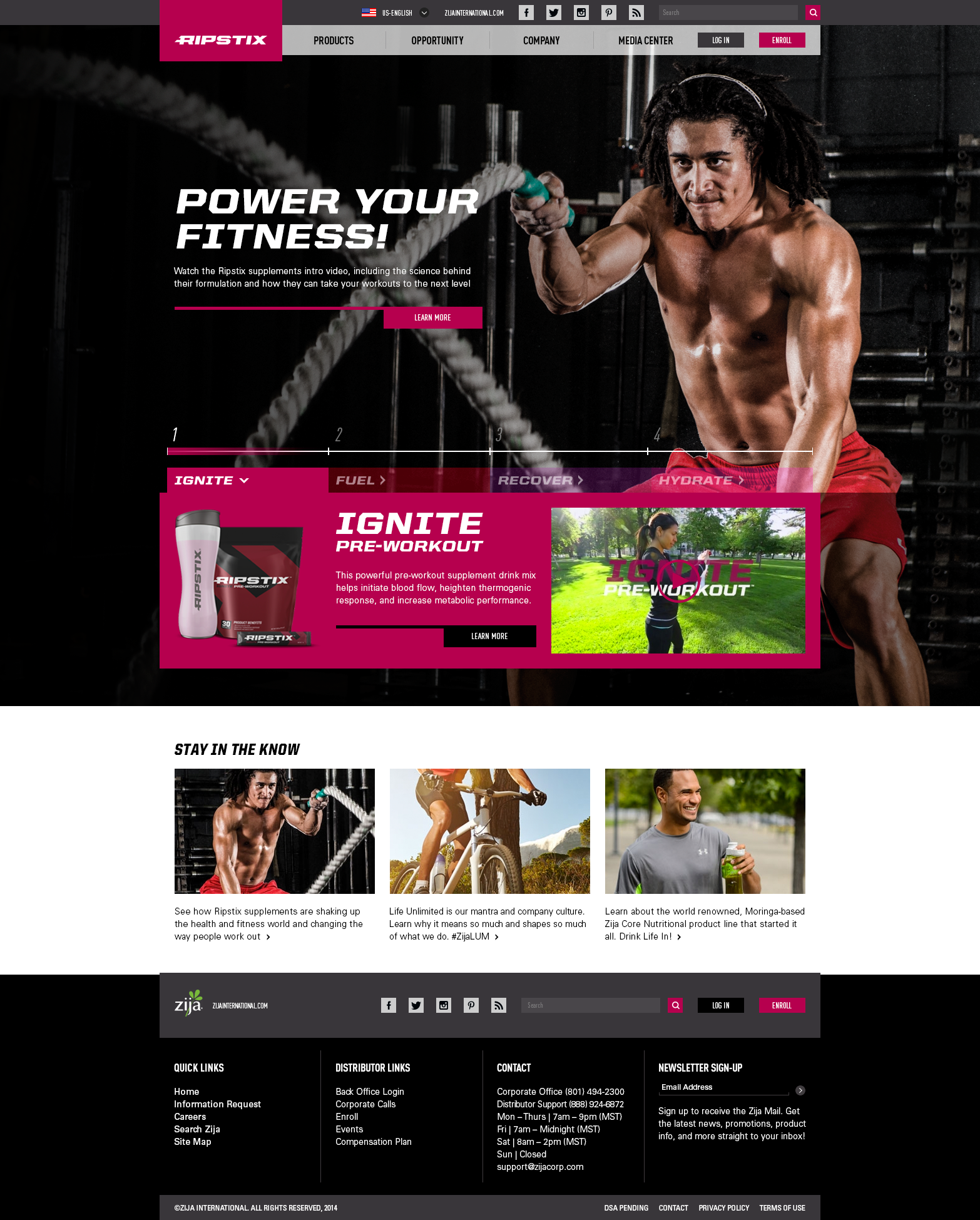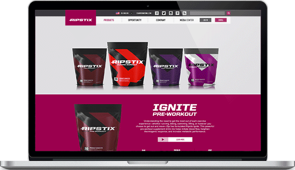 Website for Ripstix Fitness Supplements, a division of Zija International. Fully responsive.